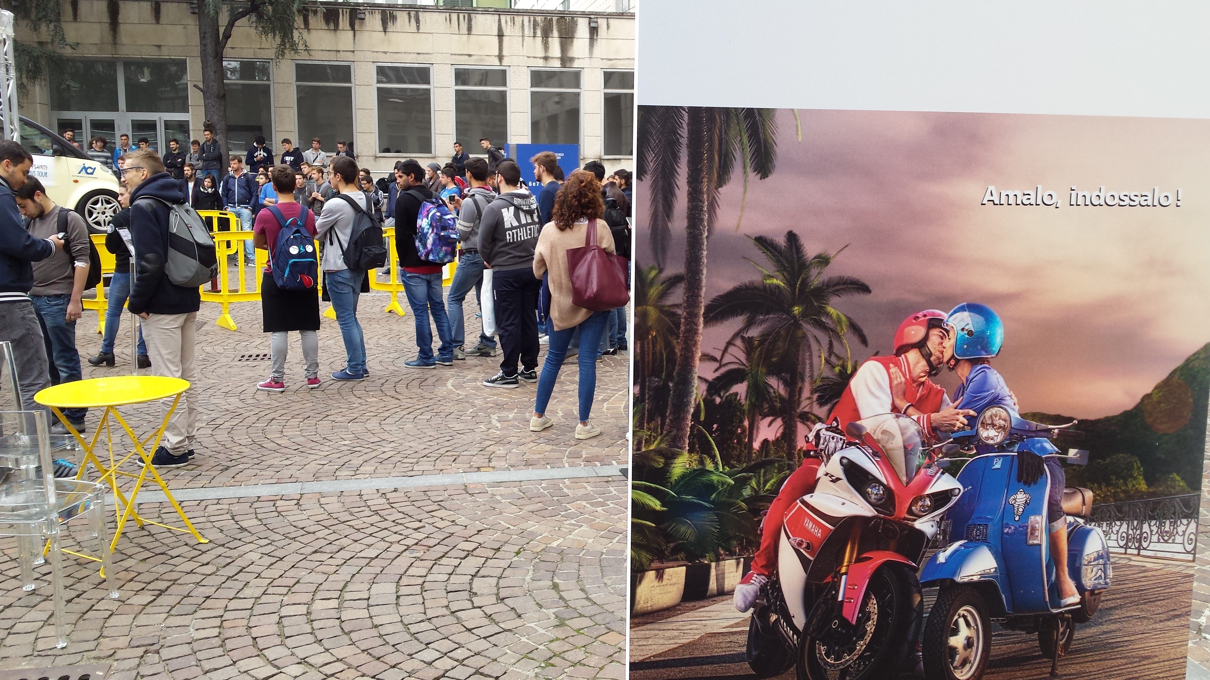 Così, un luogo familiare e quotidiano per gli studenti, come il cortile centrale del Politecnico, si trasforma in un teatro di simulazioni di guida dell’auto in stato di ebbrezza, in condizioni meteorologiche difficili e in caso di impatto e ribaltamento, o in sella a moto o scooter. Saranno proiettati video di grande impatto sul tema della sicurezza stradale, attiva e passiva, e su una prevenzione consapevole.