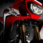 Il ridotto sviluppo in altezza del motore a carter semi-secco fa sì che la nuova CRF1000L Africa Twin abbia un’eccellente luce a terra, ben 250 mm, che le permette di superare agevolmente qualsiasi ostacolo. Inoltre, la disposizione intelligente delle varie componenti ha effetti positivi non solo sul comportamento dinamico, ma anche dal punto di vista estetico. La pompa dell’acqua è infatti alloggiata all’interno del carter frizione, ed è azionata, come anche la pompa dell’olio, dal secondo contralbero di bilanciamento.