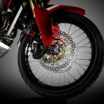 ra maxienduro e, come la CRF450 Rally, monta cerchi a raggi da 21 pollici all’anteriore e 18 pollici al posteriore. Ciò consente di installare specialistici pneumatici tassellati in alternativa a quelli semi-stradali di primo equipaggiamento.