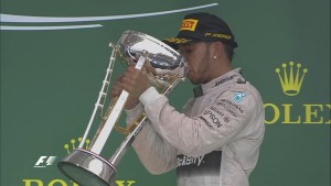 vincendo la decima gara della stagione al termine di 56 giri che hanno regalato più emozioni e sorpassi di tutto il Mondiale finora. Un successo meritato, ma di cui deve ringraziare Nico Rosberg, che era saldamente al comando (cosa che avrebbe tenuto aperto il campionato fino in Messico almeno) finché non ha commesso un errore che nessuno si è spiegato, neppure Vettel che gli era vicino, spalancando la porta al compagno di squadra. E con Sebastian Vettel terzo, dopo essere partito 13°, Hamilton