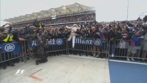 Comprensibile dal punto di vista umano la delusione di Rosberg, impietrito sul podio e impaziente di andarsene, ma un comportamento davvero poco sportivo. D’altronde, se vogliamo dirla tutta 1) non avrà digerito la manovra di “accompagnamento” all’esterno di Lewis al via e 2) ancor meno di aver gettato via una vittoria e restare in corsa per il Titolo, almeno matematicamente.