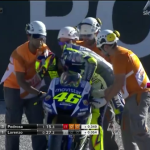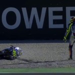 me sapete domani partirà ultimo) il leader del mondiale Valentino Rossi, scivolato nelle fasi finali alla curva 8 dopo aver perso l’avantreno.