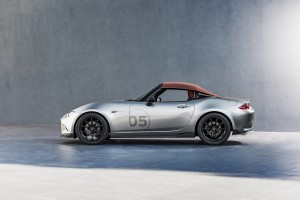 I Designers hanno tratto ispirazione dalle roadster d’epoca. La MX-5 Spyder dispone di un “bikini top”, colorazione esterna Mercury Silver, kit aerodinamico in fibra di carbonio, griglia di aspirazione, ruote leggere da 17 pollici Yokohama ADVAN corsa RS II e un Spinneybeck PRIMA in pelle naturale a “pieno fiore” per gli interni. La MX-5 Speedster, nel frattempo, torna alle origini – ha anche un deflettore al posto del parabrezza – per regalare un’esperienza da macchina sportiva “vecchia scuola”.
