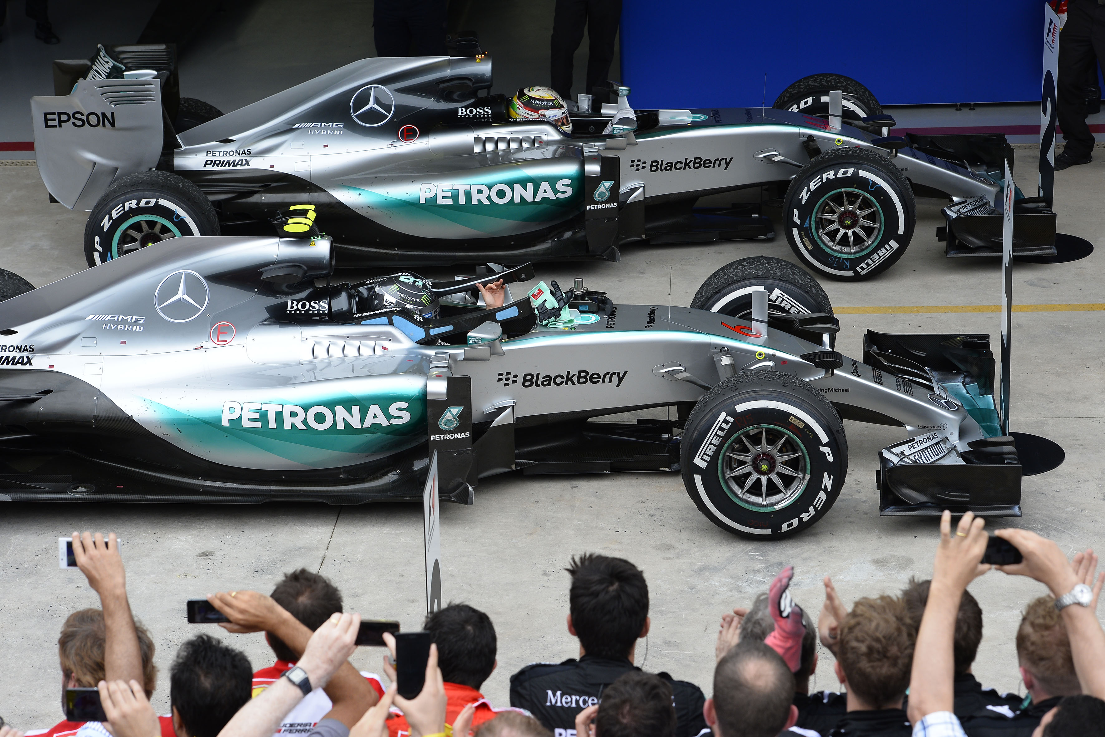 PS: alzi la mano chi non l’ha sospettato… Troppe cose, in pista e fuori. E molto strano anche che, dopo la conquista del Titolo Piloti e Costruttori, ci sia stata una ridda di voci contro l’inglese (interviste farlocche con frasi estrapolate ad hoc, foto in macchina . probabilmente mentre era fermo – al cellulare, l’insistenza sull’incidente a Montecarlo), fino alla pubblicità Mercedes in cui compare Nico Rosberg che peraltro, pur parlando perfettamente italiano, è stato doppiato (pure male). Per non parlare delle dichiarazioni di Niki Lauda. Hamilton è un ragazzo normale e positivo e se di colpo si è adombrato, proprio quando dovrebbe essere al top per la conquista del terzo Titolo, un motivo dev’esserci. Che forse sappia già che nel 2016 il team punterà sul tedesco, molto più “marketing-friendly” nel mondo? Comunque lasciatecelo dire: una brutta cosa… E se fosse vero, altro che non presentarsi per la foto post-qualifiche: noi saremmo molto meno diplomatici!