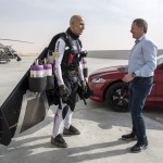 Il Jetman Dubai Yves Rossy ha preso parte alla sua prima competizione motoristica gareggiando contro una Jaguar XJR, guidata dall’ex-F1 Martin Brundle