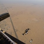 nel fantastico contesto del deserto di Dubai. Brundle, che ha guidato in F1 al fianco di Michael Schumacher e ora fa il commentatore, aveva a disposizione la nuova Jaguar XJR con motore 5,0 litri V8 sovralimentato da 550 CV, mentre Rossy era imbracato alla sua ala fissa di 2 metri alimentata da quattro compressori Jet-Cat. La gara si è svolta su una strada privata chiusa così come il cielo sopra di essa e il tutto è stato ripreso attraverso un filmato di 3 minuti.