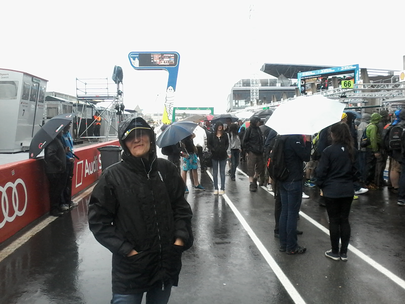 OLYMPUS DIGITAL CAMERASi torna in hotel sapendo che poi non si dormirà più per un bel po’… perché gli amici di Michelin ci danno l’opzione per la notte di sabato: tornare in hotel a dormire o restare in pista. E c’è da chiederlo?!? Il sabato è un crescendo verso l’ora fatidica, le 15.00, quando scatterà la gara. Ma prima si cammina, si incontrano i piloti, si incontrano gli amici della F1, ci si emoziona. Mark Webber mi guarda e mi abbraccia, l’urlo con Stefano Domenicali, Nico Hulkenberg e Max Chilton strabuzzano gli occhi, ma il più forte in assoluto è l’amico di lunga data Allan McNish: “What the fu***ng hell you’re doing here, Barbara?”. Perché lui sapeva che non ci sarei mai voluta andare… come Dindo Capello, impegnato full time nei box Audi. Quanti amici si incontrano a Le Mans…