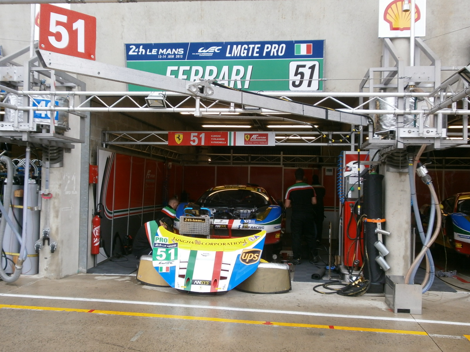 M15_1782Quando arriva la notte che si fa? Si cammina, ovvio, perché l’abbiocco è in agguato, anche se i divani e le luci tenui e i mega-schermi con immagini e tempi sono una tentazione… Ma arriva la sorpresa di un tour nei box Audi, zona solitamente off-limits specie ai giornalisti, dove ci fanno vedere e ci spiegano un sacco di cose. Poi si parte alla scoperta della notte di Le Mans. Pensi al deserto e invece la sorpresa è che la gente è sempre lì, si muove, ovunque, si sposta, esattamente come noi. Ci sono spettacoli, musica, mille posti di tutti i generi dove mangiare, negozi di souvenir aperti, cose da vedere, tutto pulitissimo, perché gli addetti lavorano incessantemente. Intanto che vedi tutto questo pensi a loro, ai piloti in pista, con nelle orecchie sempre costante il rombo dei motori. Ci spostiamo di curva in curva… “Siamo arrivati qui, vuoi non andare a vedere più avanti dove le macchine 20150613_221950escono in appoggio?”. Chilometri percorsi? Perso il conto. Sonno? Non pervenuto, il bello dell’adrenalina! Certo è strano… mentre camminiamo, mangiamo, parliamo, fotografiamo, ridiamo, loro corrono, girano a velocità folli nel buio pesto. Non sono “normali”, adesso ne abbiamo la certezza! Il tratto per tornare all’hospitality Michelin è lungo, forse è il caso di fermarsi un po’ adesso, guardare la gara da un divano in terrazza. Ma poi chiama un amico: “Dove sei? Dai vieni qui in Ferrari che ti faccio un caffè giusto e c’è una sorpresa“. Puoi dire di no, anche se sono quasi le 4 e devi rifare un paio di km (e altrettanti per tornare indietro)? E così si riparte, caffè, chiacchiere, giro nel box proprio giusto per il cambio pilota e anche il divertimento di sentire dei colloqui via radio dei piloti. Curiosità? Meccanici in apparenza addormentati sulle sdraio, di colpo in piedi e pronti per il pitstop, velocissimi e precisi. Alla fine, pacche sulle spalle, “cinque” che potrebbero stendere un lottatore di sumo, tanti sorrisi, una sigaretta e di nuovo sulla sdraio, come niente fosse successo…