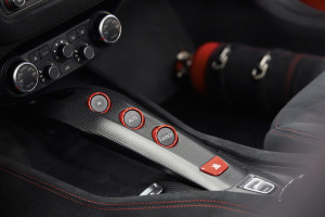 Anche gli interni sono ispirati alla vettura da corsa, con l’impiego dell’Alcantara e di un tessuto nero opaco ispirato alla fibra di carbonio che caratterizza anche il volante, proprio come sulla 458 GT3. La pedaliera è in alluminio nero mentre la tappezzeria, compresi i tappetini, sono in un tessuto tecnico nero denominato SuperFabric che è un materiale rigido, a prova di proiettile, con finiture 3D sulla superficie. Anche i sedili in Alcantara sono caratterizzati da inserti in tessuto ad elevato grip per il massimo comfort di guida.