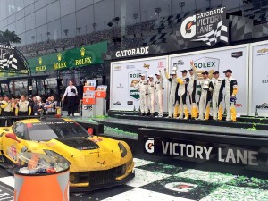 The pole-winning Nissan-engined BR Engineering BR01 finished down in 38th position after three stops to solve a braking problem. The factory Chevrolet Corvettes finished 0.034s apart at the head of the GT Le Mans field after thrilling climx to the race. Antonio Garcia set a series of fastest laps aboard the Corvette C7.R he shared with Jan Magnussen and Mike Rockenfeller as he closed down on team-mate Oliver Gavin. The Spaniard briefly passed the leader around the outside into Turn 1 with two laps to go, but ran wide and allowed Gavin to retake the advantage and secure the win for himself, Tommy Milner and Marcel Fassler. Third place went to the factory Porsche 911 RSR of Earl Bamber, Frederic Makowiecki and Michael Christensen.