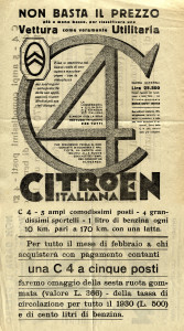 In Italia, Citroën decise di costruire inizialmente due modelli di vettura: la piccola 5HP, che da noi si chiamava “Tipo 5” e la più grande 10HP, per noi la “Tipo 10”. Nel 1929 fu avviata la produzione delle C4 e C6, quest’ultima, nel nostro Paese, fu chiamata “Lictoria Sex”. Una