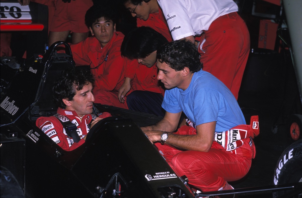 RIO DE JANEIRO (BRASILE) 25_03_1989- AYRTON SENNA DUBBIOSO E SORRIDENTE MENTRE I SUOI MECCANICI MONTANO SULLA SUA MCLARE IL COCKPIT. ©FOTO ERCOLE COLOMBO