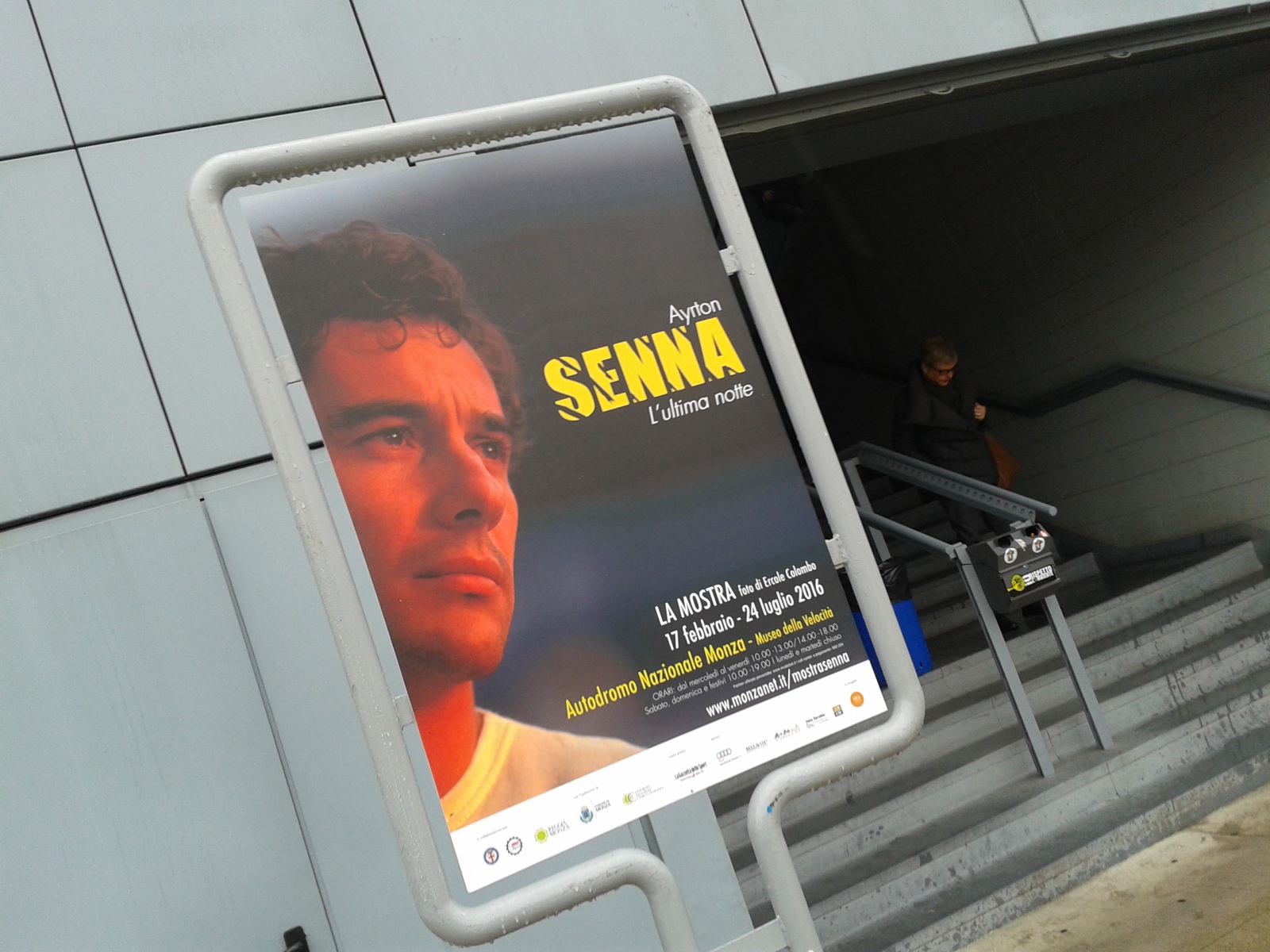 Mostra Ayrton (3)Premessa: i dati “freddi” sono che la mostra (ideata, prodotta e organizzata da ViDi in collaborazione con l’Autodromo Nazionale Monza e con il Consorzio Villa Reale e Parco di Monza) resterà aperta al pubblico fino al 24 luglio (orari: da mercoledì a venerdì 10-13; 14-18: sabato e domenica 10-19; lunedì e martedì chiuso; biglietti intero 7 euro, ridotto 5 euro) ma, assicurano i responsabili dell’Autodromo, troverà poi un’altra collocazione, perché sarebbe assurdo chiuderla prima del GP d’Italia a settembre. La mostra è un’occasione unica per ripercorrere la carriera sportiva, ma anche gli aspetti più intimi del campione brasiliano, attraverso una selezione di circa cento fotografie di Ercole Colombo, uno dei più grandi fotografi della F1, monzese doc, entrato nel mondo della fotografia nel 1970. Il percorso CZ4tRtNWIAEc2bvespositivo, arricchito dai testi di Giorgio Terruzzi, ripercorre i momenti più significativi di Senna: gli inizi col kart, l’esordio in F1, le vittorie e le sconfitte storiche, gli amici e i rivali, il rapporto con Alain Prost, gli amori, la fede, la famiglia e le sue ultime, drammatiche ore in pista. La mostra prende spunto dal libro di Terruzzi “Suite 200. L’ultima notte di Ayrton Senna” (editore 66THAND2ND, collana “Vite inattese”, 2014): un romanzo avvincente che molti di voi avranno letto (e se non l’avete fatto rimediate, un consiglio spassionato), da cui emergono gli ultimi momenti della vita e le riflessioni del grande pilota nel suo approssimarsi a quella domenica 1° maggio.