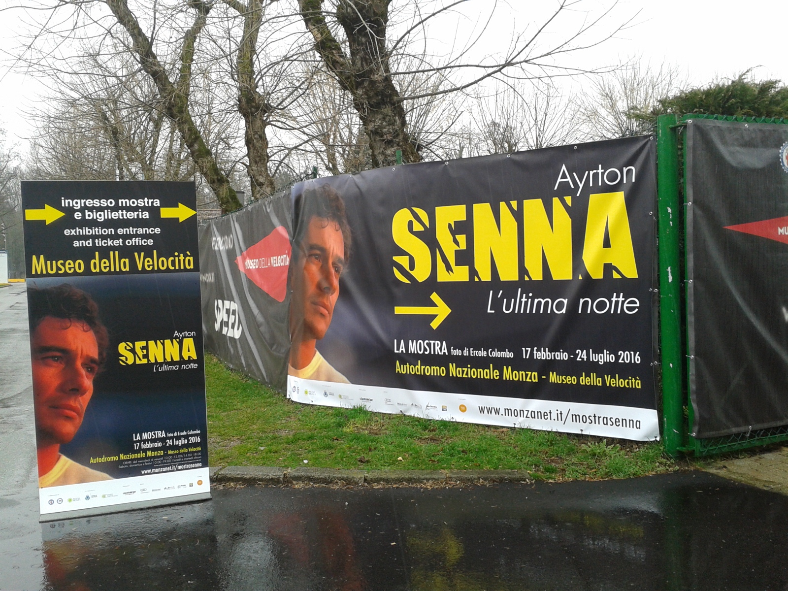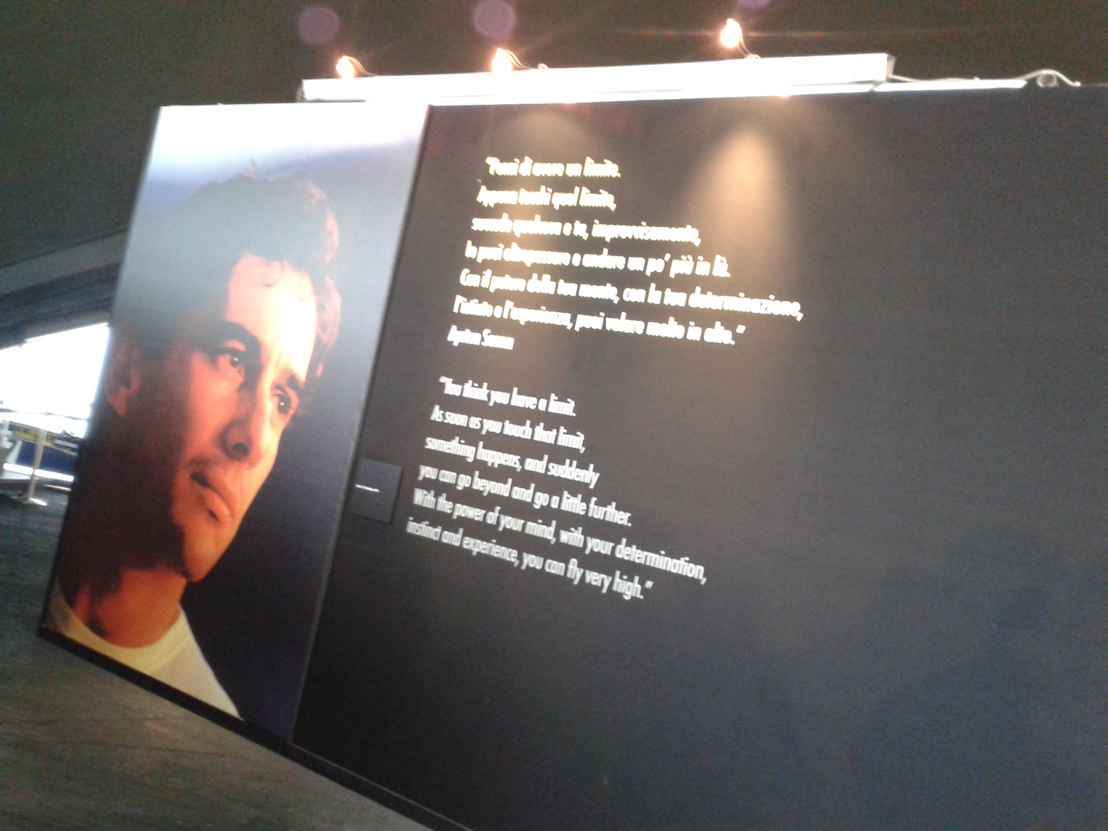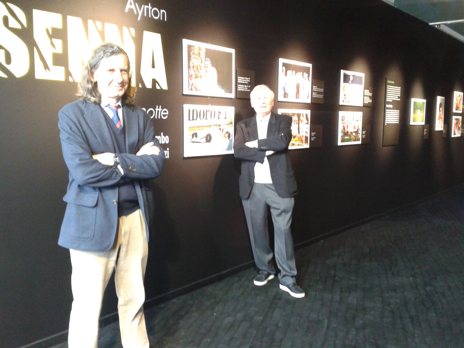 Che dirvi se non consigliarvi di andarci? Per noi è stata un’esperienza fortissima eppure siamo abituati a questo mondo, conosciamo Ercole e Giorgio, ma li abbiamo visti in un modo nuovo: l’amicizia, la stima, il rispetto che li unisce da tanti anni hanno prodotto una mostra unica. Le immagini di Ercole non sono semplici foto, trasmettono emozioni che ti colpiscono allo stomaco, che si tratti della torta in faccia con Berger o di Roland portato via in barella. Il casco di Ayrton, le sue tute, il suo kart originale del 1979 con cui agli esordi vinse diverse gare. Alla fine ti chiedi solo “perché” e pensi che quel titolo de La Gazzetta dello Sport sia davvero, tragicamente, vero: “Con Senna muore questa Formula 1“. Dopo di lui, dopo quel maledetto weekend è stato fatto tanto per la sicurezza, ma il rischio come sappiamo purtroppo esisterà sempre. Arrivi alla fine e ti trovi un muro nero, un pennarello bianco e puoi scrivere quello che ti viene in mente in quel momento. Noi abbiamo rivisto l’albero sotto il quale riposa Ayrton nella sua San Paolo. Incrociando Ivan Capelli, ci siamo dati un’occhiata e ci ha detto “Sono tesissimo”.