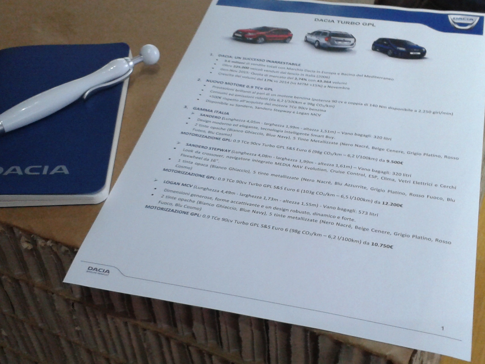 20151214_134356Adesso Dacia rilancia e, approfittando del passaggio all’Euro 6, presenta il nuovo motore GPL sviluppato sul motore 0.9 TCe (Turbo Control Efficiency). Disponibile sulla famiglia Sandero e Logan MCV questo motore, grazie alla moderna tecnologia Turbo, offre prestazioni brillanti che fanno dimenticare di essere alla guida di un motore GPL pur garantendo consumi ed emissioni minimi.