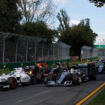 stata ricca di azione, nonostante l’ormai consueta doppietta Mercedes alla fine, ma arrivata non in modo scontato. Dopo due giri di formazione, per la Red Bull di Kvyat rimasta ferma in griglia (per il secondo anno consecutivo qui a Melbourne), al semaforo Vettel ha infilato magistralmente Hamilton e Rosberg, prendendo il comando alla prima curva seguito da Raikkonen. Hamilton si è quindi ritrovato 6°, dietro anche alla Toro Rosso di Verstappen e alla Williams di Massa e gli ci sono voluti 4 giri per passare il brasiliano, restando poi bloccato dietro a Max, consentendo ai primi tre di allungare fino al primo round di pitstop.