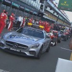 Rosberg è passato alle soft, con Hamilton sulle medie, nel tentativo del team di farlo arrivare fino alla fine con una sola sosta. Ma la gara è stata rivoluzionata dall’incidente, con tutte le monoposto rientratein pitlane e molti che ne hanno approfittato per il cambio gomme. Rosberg ha seguito Hamilton con le medie, ma le Ferrari sono rimaste sulle supersoft e Daniel Ricciardo e le Toro Rosso sulle soft. Alla ripartenza dietro la safety car Vettel era quindi davanti a Rosberg, Raikkonen, Ricciardo, Verstappen, Carlos Sainz Jr, Hamilton e Massa.