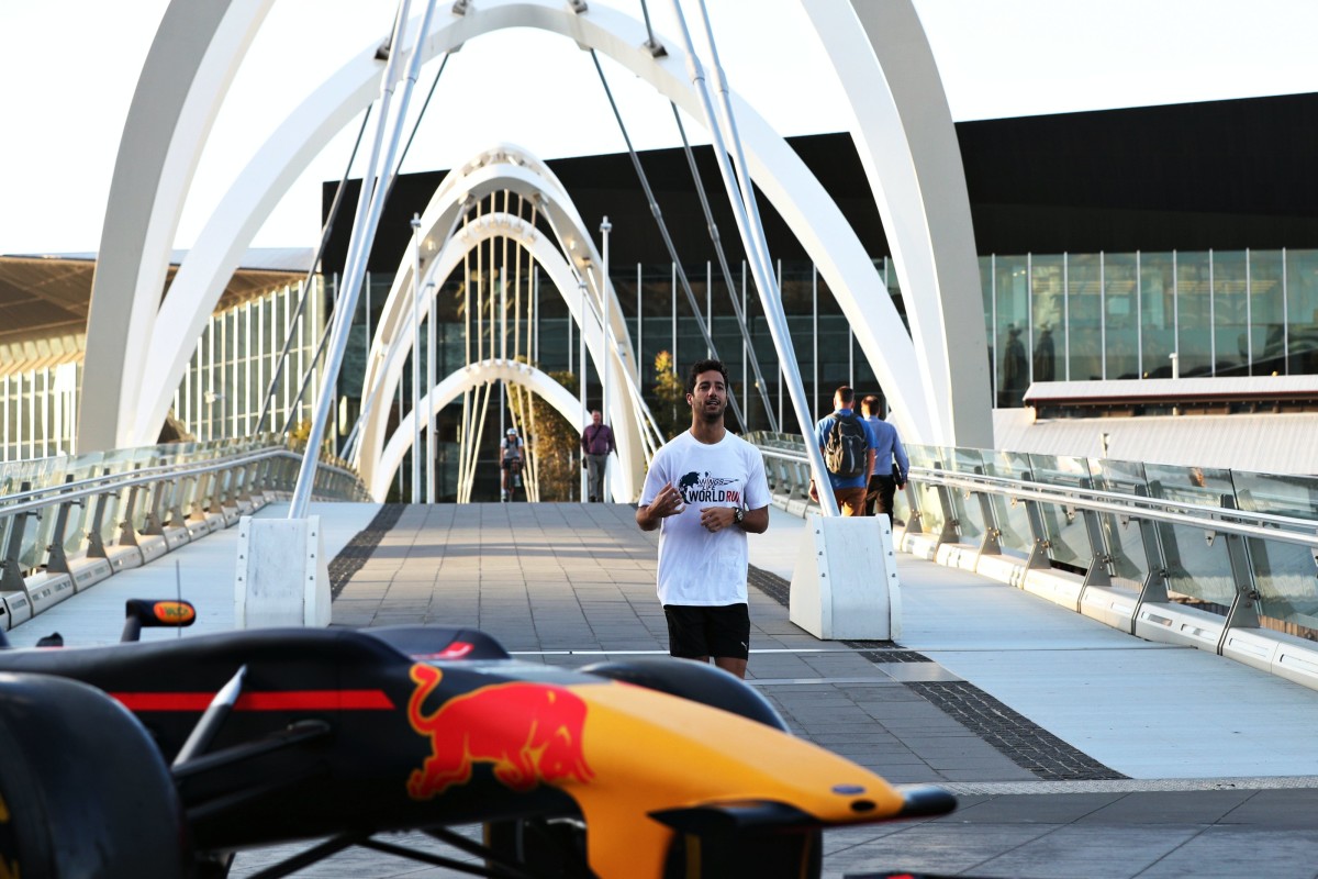Alla vigilia della nuova stagione di F1, il pilota della Red Bull Racing Daniel Ricciardo si è divertito in uno shooting d’eccezione sul Seafarers Bridge a Melbourne a supporto della Wings for Life World Run 2016, che si correrà in contemporanea domenica 8 maggio in 34 location di tutto il mondo. Per questi scatti speciali Daniel ha corso su uno dei ponti più suggestivi della città australiana e si è messo alla guida dalla C