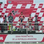 Il pilota della Repsol Honda Marc Marquez sale sul gradino più alto del podio nel GP d’Argentina, seconda prova del Mondiale 2016. Alle sue spalle Valentino Rossi e il compagno di squadra Dani Pedrosa, in una gara che si è decisa proprio alla fine, quando i due piloti della Ducati Andrea Iannone e Andrea Dovizioso si toccano e cadono quando erano secondo e terzo.