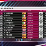 Marquez taglia il traguardo mentre dietro capita quello che ormai sembrava impensabile: le due Ducati si toccano alla penultima curva, Iannone e Dovizioso cadono (3 posizioni in meno a Austin per Iannone, per aver causato l’incidente, mentre Dovi spinge la moto fino al traguardo, 13°), con Rossi che conquista il secondo posto davanti a Pedrosa. Prossimo appuntamento per la classe regina tra una settimana, con il GP delle Americhe in Texas.