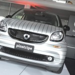 personalizzazione tanto attuale nel mondo dell’automobile. Le pellicole stampate in digitale riproducono delle grafiche sviluppate appositamente sul body della smart fortwo, la piccola di Casa Mercedes. Ricerca e qualità, attenzione al dettaglio, utilizzo di materiali premium e un attento lavoro progettuale da parte del design team del Garage hanno portato alla realizzazione di smart fortwo pois e pinstripe.