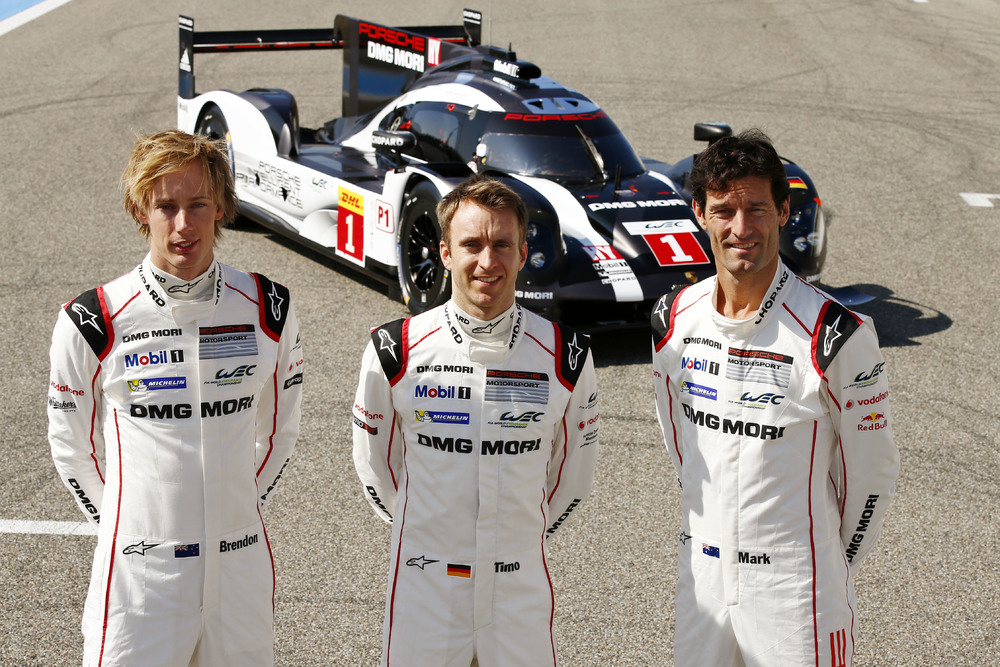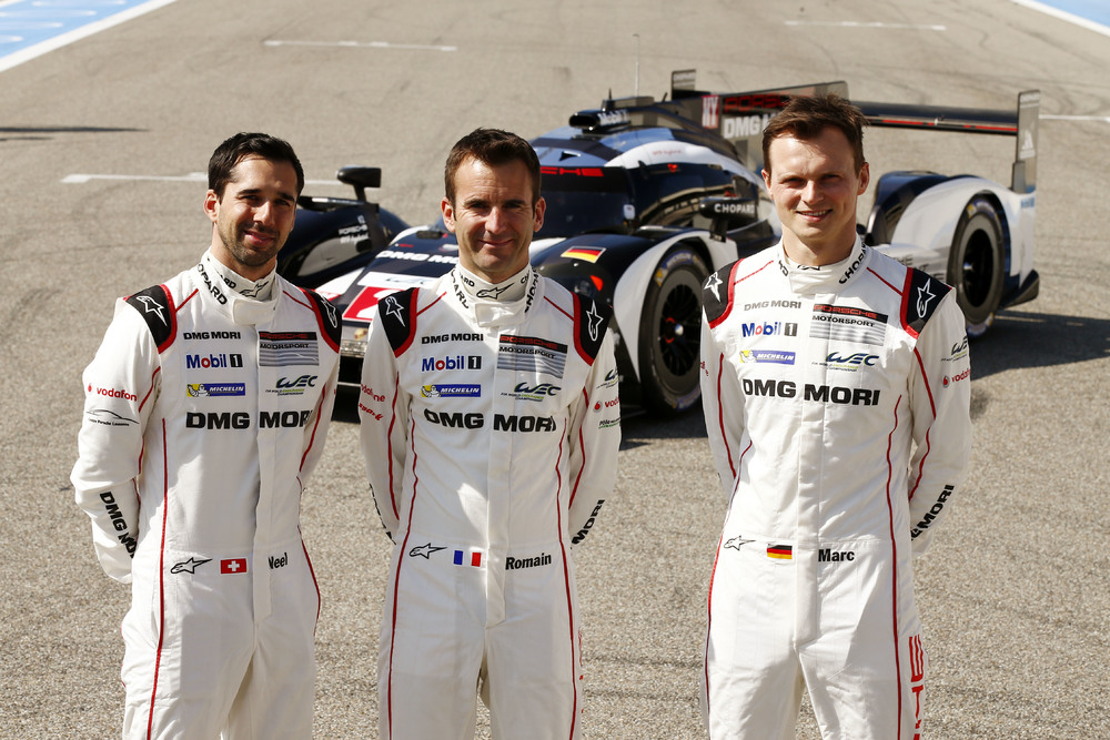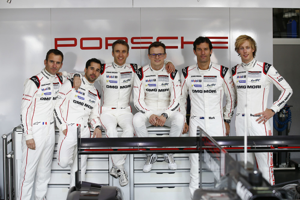 Il team Porsche, composto da 260 persone e capitanato da Enzinger e dal Direttore del Team Andreas Seidl, affronta la terza stagione consecutiva con la stessa formazione di piloti. In veste di attuali campioni del mondo, Timo Bernhard (DE), Brendon Hartley (NZ) and Mark Webber (AU) correranno col numero 1 sulla loro vettura. I compagni di squadra Romain Dumas (FR), Neel Jani (CH) e Marc Lieb (DE) condividono la vettura gemella numero 2.