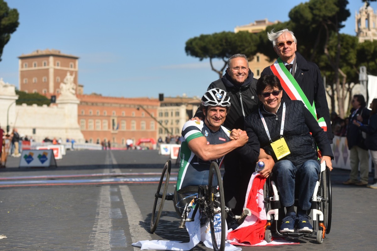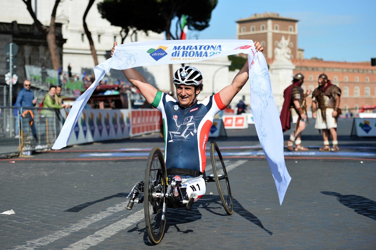 P90215329_highRes_rome-it-10th-april-2“E’ stata una giornata meravigliosa. Il tempo bello e soleggiato. E’ una delle migliori maratone del mondo e ci sono andato sapendo che avrei fatto bene, consapevole di essermi preparato al meglio”, ha commentato Zanardi. “Per me è stato interessante confrontare la mia prestazione alle precedenti qui a Roma. Sono stato due minuti e mezzo più veloce che nel 2012, quando ho stabilito il mio record precedente proprio durante i preparativi per i Giochi Paralimpici di Londra. Per questo motivo sono veramente felice perché questa volta ho realizzato una buona prestazione. Il tempo di 1:09:15 è abbastanza buono, considerando quanto sia difficile questo percorso, che attraversa tutto il centro della città, di cui un terzo consiste di strade con sanpietrini e complessivamente è molto accidentato e con parecchie curve strette. Quindi non è un circuito che si potrebbe definire lineare e veloce”.