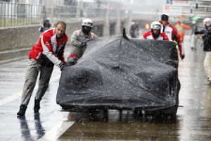 In the WEC the average of the respective best laps of two drivers counts for the grid position. In Silverstone Hartley/Webber (car number 1 / 1:54.150 minutes) and Dumas/Jani (car number 2 / 1:54.266 minutes) were the qualifying drivers. In the morning, during the third free practice session, the Porsche prototypes only did one installation lap each with Webber and Jani at the wheel. The session was stopped early by the race director because of snow.