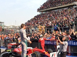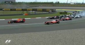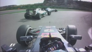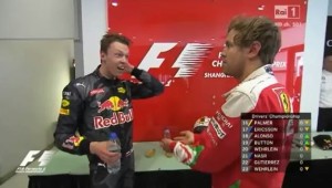semplicemente correndo…) sono stati davvero eccessivi. E allora Kimi cosa avrebbe dovuto fare visto che è stato travolto? Compagno di squadra o no, gli saranno girate e non poco… Insomma, si tratta di F1, non di balletto classico, o no? Un sorriso in più sul podio ci stava, Sebastian, in fondo sei arrivato secondo… E chi in TV ha paragonato queste scene a quelle tra Senna e Schumacher o Senna e Prost ci ha fatto sobbalzare sulla sedia! A noi ha piuttosto fatto tornare in mente la bambinata del cappellino tra Nico e Lewis.