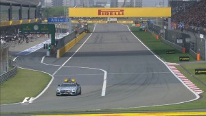sinistro, causata da un detrito, come detto subito dal team e da Pirelli. Per rimuovere i detriti è entrata in pista la safety car, che ha rimescolato le carte. Durante i 5 giri in cui è rimasta in pista, Hamilton ha fatto due soste, montando prima le supersoft per un giro e poi le soft, mescola con cui era partito, cosa che gli ha permesso di avere libertà di scelta per il resto della gara.