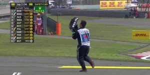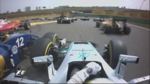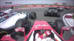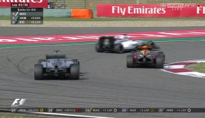 Nel frattempo Hamilton aveva recuperato 5 posizioni alla curva 1 ma dopo essere finito su un pezzo dell’ala di Raikkonen, è stato colpito dalla Sauber di Nasr, con l’ala distrutta e finita sotto la Mercedes, causando anche danni al fondo e perdita di carico aerodinamico che hanno rallentato la sua rimonta.