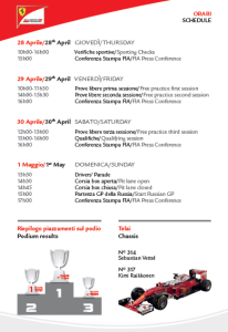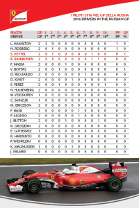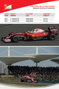 Per avere sott’occhio il weekend del GP di Russia, quarto round del Mondiale di F1 2016, la Ferrari ha preparato questo documento. Gli amanti delle statistiche impazziranno di gioia! Buon ripasso a tutti!