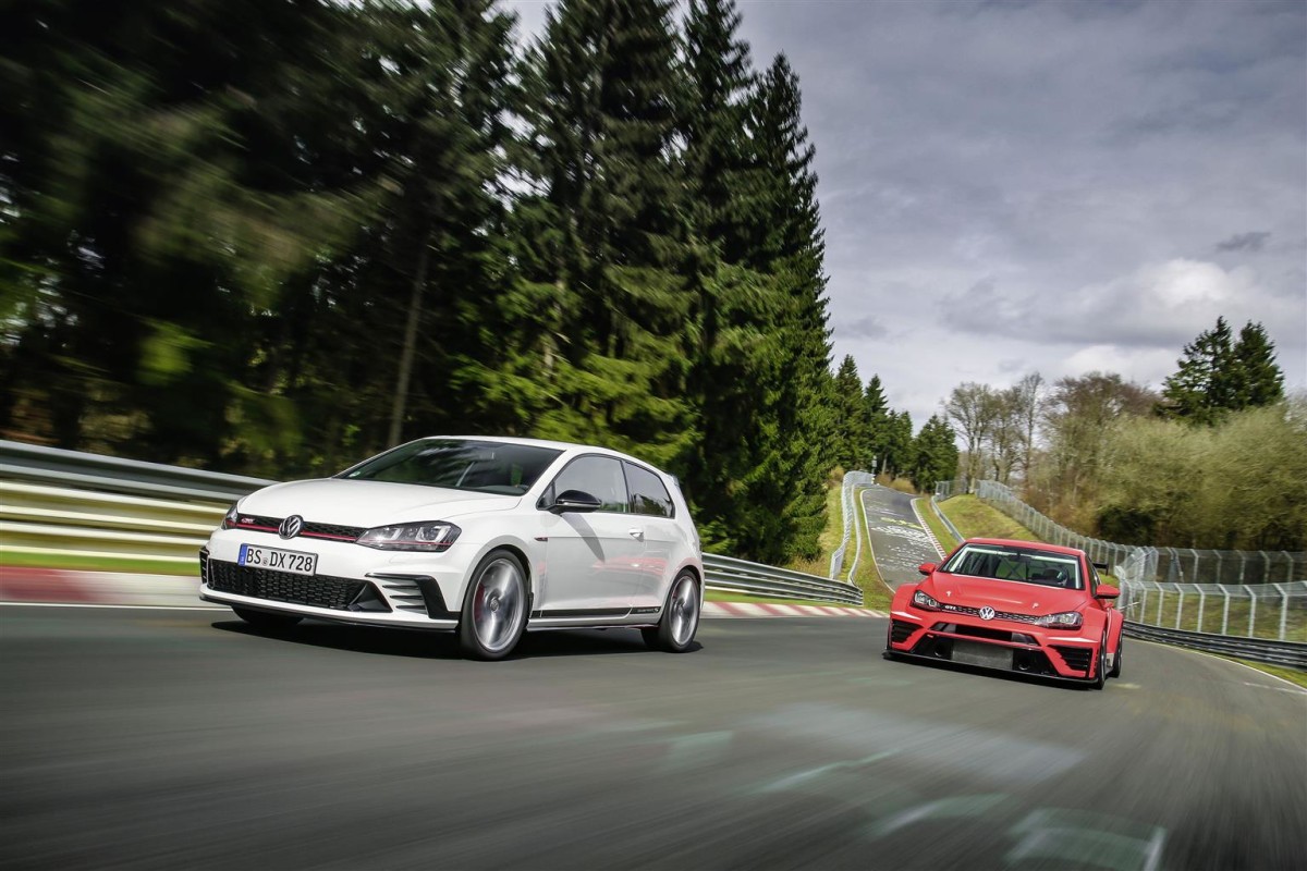 La Golf GTI Clubsport S taglia il traguardo dell’“inferno verde”, come viene soprannominato dagli appassionati il circuito Nordschleife. Al volante della Golf GTI più potente di tutti i tempi, il pilota tedesco Benny Leuchter (28 anni) ha appena battuto il record sul giro per vetture di serie a trazione anteriore del Nürburgring-Nordschleife. D’ora in poi, il tempo da battere sarà quello della GTI: 07:49:21. L’esclusiva vettura