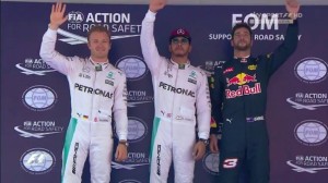 Entrambi i piloti Mercedes hanno commesso degli errori nel loro primo run in Q3, con un bloccaggio di Hamilton alla curva 10 che ha consentito a Rosberg di fare la pole provvisoria. Ma questa era la sua giornata e nel secondo tentativo ha dato 0.280s al compagno di squadra. Terzo Daniel Ricciardo, a 6 decimi dalla Mercedes di Rosberg e davanti al nuovo compagno di squadra Max Verstappen per soli 2 decimi.