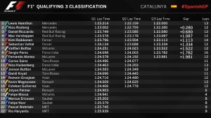 La pole del GP di Spagna è di Lewis Hamilton, 52° in carriera e 3° della stagione, davanti al compagno di squadra Nico Rosberg, alla seconda fila Red Bull e alla terza Ferrari. Un giro pazzesco quello del campione in carica, 1.22.000, sul quale proprio qui a Barcellona circolano voci secondo cui domani potrebbe annunciare un anno sabbatico. Voci, visto che l’urlo e l’entusiasmo alla fine non sono proprio quelli di chi avrebbe deciso di seguire la F1 sul divano di casa…