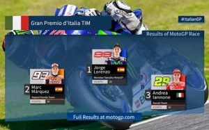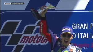 Jorge Lorenzo vince il GP d’Italia al Mugello, dopo aver battuto in volata Marc Marquez. Terza la Ducati di Andrea Iannone terzo, con Valentino Rossi