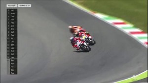 Dovizioso sbaglia alla curva 1 e perde la terza piazza. Mentre Lorenzo e Marquez sono a oltre 5 secondi dal pilota di Vasto. Il talento di Cervera prova l’attacco all’Arrabbiata 2 ma sbaglia e va largo, mantiene comunque la seconda posizione e si rifà sotto. Pedrosa è vicino e sembra essere più veloce di Iannone, lo supera al secondo giro ma il numero 29 riprende il terzo posto. Ultimo giro, si accende la sfida tra Marquez e Lorenzo. Il numero 93 attacca il maiorchino alla curva 2 e lo sorpassa.