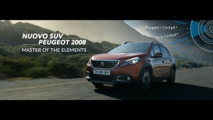 La capacità di governare ogni situazione è ben rappresentata nello spot TV. Una coppia a bordo del SUV Peugeot 2008 percorre le strade tortuose di una cittadina di mare dove sta per scatenarsi una furiosa tempesta. I protagonisti, però, continuano, il viaggio in tutta sicurezza. Attivando il Grip Control®, il SUV 2008 prosegue agilmente sulla sua strada come se dominasse gli elementi atmosferici. Infatti pioggia, onde e vento si immobilizzano al passaggio della vettura. La campagna televisiva con spot 30” e 45” è completata da stampa,