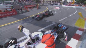 In a dramatic moment the drain cover was flicked back into the path of Jenson Button’s McLaren, causing substantial damage to the Briton’s front wing and leading to the session being red flagged with three minutes to go. Williams and Renault were also in the wars. At the former, Felipe Massa got it wrong coming into Ste Devote less than half an hour in, and badly damaged the left-side of his car against the barriers.