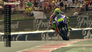 In testa sempre Rossi, con Marquez vicino. Pedrosa è a oltre 2 secondi e dietro il numero 25 Suzuki è incollato a Lorenzo in difficoltà nelle curve. Iannone è a 2 secondi dal pilota di Figueres che quando mancano 14 passaggi ha la meglio definitivamente su Lorenzo, ora nel mirino della Desmosedici numero 29.
