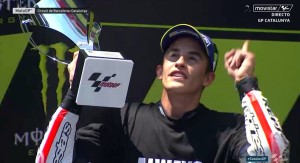 Davanti Rossi e Marquez fanno l’andatura con lo spagnolo con qualche difficoltà con le gomme ma la lotta si anima al 20° giro. Marquez attacca ed è al comando, Rossi risponde staccando in fondo al lungo rettilineo e resta davanti. Meno 3 giri alla fine e il numero 93 ci prova ancora, è nuovamente primo. Mancano due giri alla bandiera a scacchi e Rossi torna in testa con una staccata super in fondo al rettilineo allungando poi in mezzo giro anche grazie all’errore di Marquez alla curva 6. All’ultimo passaggio il Dottore ha un secondo circa sul rivale e taglia il traguardo davanti a tutti alla fine di una gara stupenda. Marquez è secondo, Pedrosa terzo e Viñales quarto. Il Dottore trionfa ancora sul suolo spagnolo dopo il primo posto di Jerez. Gli altri italiani sono distanti, Dovizioso è 7°, Petrucci 9° e Pirro 15°.