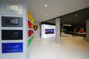 Per il visitatore l’esperienza museale è divisa in capitoli: all’ingresso si è accolti dal veloce passaggio, in una ambientazione tipicamente emiliana, di una Aventador ed una Huracán che
