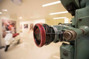 Sono esposti, accanto a locandine e fotogrammi di numerosi film, anche alcuni modelli di Vespa che abbracciano settant’anni di storia, di stile e di evoluzione dei costumi; si tratta anche di un viaggio nella macchina del tempo che ripercorre, attraverso le immagini e i suoni indimenticabili che hanno accompagnato l’evoluzione della Vespa, un bel pezzo della storia d’Italia. Per l’occasione il Museo Nazionale del Cinema ha prestato alcuni preziosi apparecchi delle sue collezioni: alcune macchine da presa in 35 millimetri, un proiettore e la preziosa moviola appartenuta a Ermanno Olmi.