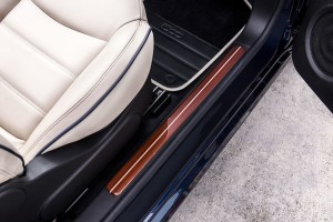 All’interno, la fascia centrale della plancia, in mogano verniciato a mano con intarsi in acero, restituisce agli occupanti il calore lussuoso della vita a bordo, come sottolineato dal logo Riva. La realizzazione della plancia ha richiesto un innovativo processo ingegneristico: per garantire stabilità, flessibilità e resistenza perfetta nel tempo, il legno viene applicato su un guscio di carbonio ultraleggero. Per gli intarsi in acero occorre un’inserzione manuale che rende unica ogni singola creazione. Il legno, quindi, il più naturale degli elementi, si sposa con l’avanzata tecnologia per un risultato di assoluta eccellenza, come avviene sulle imbarcazioni Riva: perfetta unione tra ultimate technology e alta manualità. Sono in mogano anche i battitacco e il pomello del cambio, lavorato dal pieno, mentre per i sedili è stato scelta una