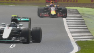 stesso ordine anche dopo aver montato le medie. A metà gara Rosberg ha recuperato in velocità, incollato a Verstappen, lamentando più volte via radio che l’olandese avesse cambiato più volte direzione per difendersi (e quando frigna così Rosberg è insopportabile…), prima di riuscire a passarlo all’esterno della Stowe. Rosberg ha poi iniziato ad avvicinarsi ad Hamilton, riducendo il gap da 8 a 6 secondi, fino al problema al cambio.