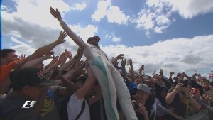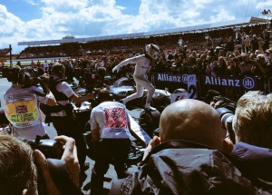 Ultima nota di questa gara: sarà anche la prima volta in cui si verifica il caso di una comunicazione proibita via radio, ma la FIA non poteva decidere prima la sanzione? Tanto per far salire sul podio chi davvero è arrivato a podio e non mettere in piedi un teatrino ridicolo… Ma su tutto prevale la bellezza dello spettacolo dell’abbraccio del pubblico a Lewis Hamilton, che proprio non ce l’ha fatta a trattenersi (e perché avrebbe dovuto?) lanciandosi tra i suoi fans. I fischi sul podio a Rosberg? Mai belli. Ma dopo quanto accaduto in Austria una settimana fa non poteva certo aspettarsi una festa… Adesso la classifica è corta. E prima della decisione dei commissari Hamilton è a soli 4 punti dal rivale numero uno… prima della decisione della FIA, che speriamo non arrivi a notte fonda!