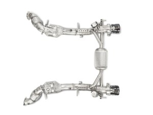 488GTB 3Lo Slip-On può essere ulteriormente migliorato con l’aggiunta del set di tubi di raccordo optional, con o senza convertitori catalitici. Le possibilità di preparazione offerte da questi tubi in inox portano la Ferrari 488 GTB a livelli di prestazione ancora maggiori. Il set optional di tubi di raccordo con convertitori catalitici ha catalizzatori 200 celle e tubi maggiorati, che apportano un incremento in prestazioni grazie al flusso meno ristretto attraverso il catalizzatore e minore contropressione. Anche i livelli di suono sono così migliorati con un incremento di 10 dB al suono esterno, evidenziando il carattere del motore e migliorando il piacere di ascolto, soprattutto agli alti giri.