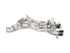 Il set di tubi di raccordo optional senza convertitori catalitici porta la 488 GTB a livelli ancora maggiori, dandole il massimo in prestazioni di suono e sportività. Gli ingegneri del suono di Akrapovič hanno ulteriormente incrementato la preparazione e sviluppato un suono molto simile a quello della 458 Italia, dandole una tonalità simile a quella di un motore aspirato V8. Costruiti con tubi di diametro più largo, è disegnato per ridurre al minimo la contropressione e tirare fuori il massimo dalla potenza del motore. Installando i tubi di raccordo optional, sia con che senza convertitori catalitici, è necessaria la rimappatura della centralina.