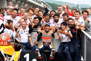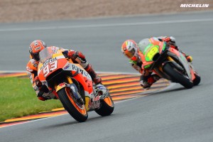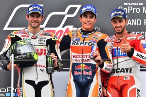 Il GP di Germania va a Marc Marquez che, grazie ad una tattica perfetta del suo box, domina dopo la pioggia. Secondo Cal Crutchlow e terzo Andrea Dovizioso.