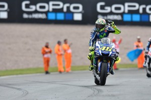 In testa alla griglia di partenza c’è Marc Marquez affiancato da Hector Barbera. Il pilota HRC è caduto durante le prove della mattina, una brutta botta alla gamba destra dopo la scivolata alla curva 8 mentre il pilota Avintia Racing è stato protagonista di ottime qualifiche risultando il miglior ducatista e nel warm up ha centrato la top 10. In terza posizione Valentino Rossi, in ripresa dopo le difficoltà delle libere di venerdì. Al contrario del Dottore Jorge Lorenzo è protagonista finora di un fine settimana opaco e scatterà dalla 11° piazza dopo un warm up chiuso in 20° posizione. Chi ha interpretato un ottimo sabato è stato Danilo Petrucci, che apre la seconda fila e, viste le condizioni da bagnato, potrebbe essere autore di una grande prova sulla sua GP15 Octo Pramac Yakhnich. I piloti del team Ducati sono in terza fila, Andrea Dovizioso settimo e Andrea Iannone nono.